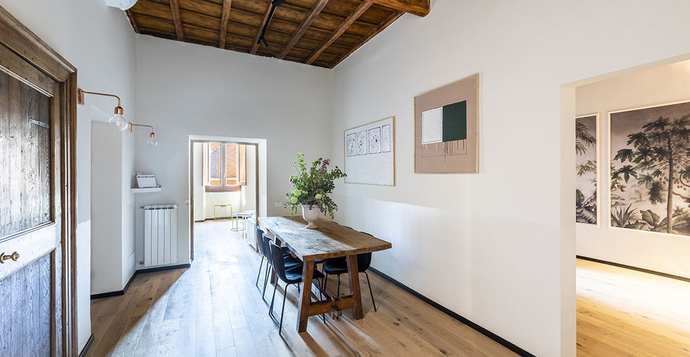 Baullari 2 is an elegant and fine apartment located in the city centre of Rome, one of the most famous Italian cities all over the world for its history and culture. The apartment has got an elevator, and it is placed on the fourth floor of a seventeenth century noble building, placed in the historic centre of the city. from the house you can easily reach all the most well-known amenities that the Eternal city could offer you, as Campo de’ Fiori and all the archaeological sites of Rome. Baullari 2 has been renovated, but it has been preserved the old structure, with its magnificent ceilings with wooden beams, large doors with iron or wood overhangs, Art Nouveau parquet floors and hexagonal bricks.